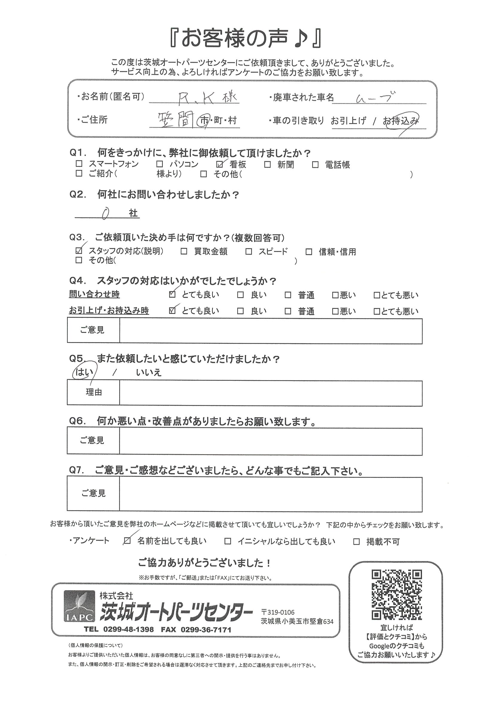 R・K 様 ムーヴ 笠間市からお持込み♪