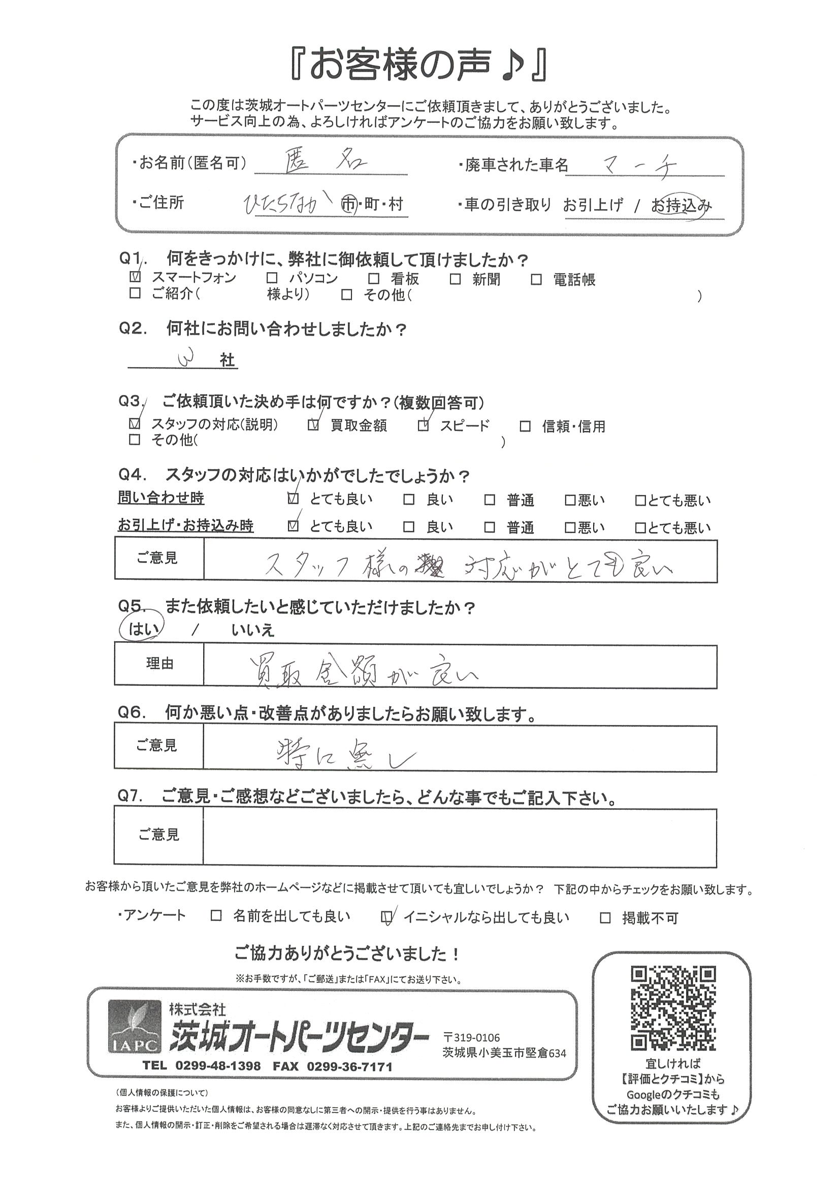 匿名 様 マーチ ひたちなか市からお持込み🚙